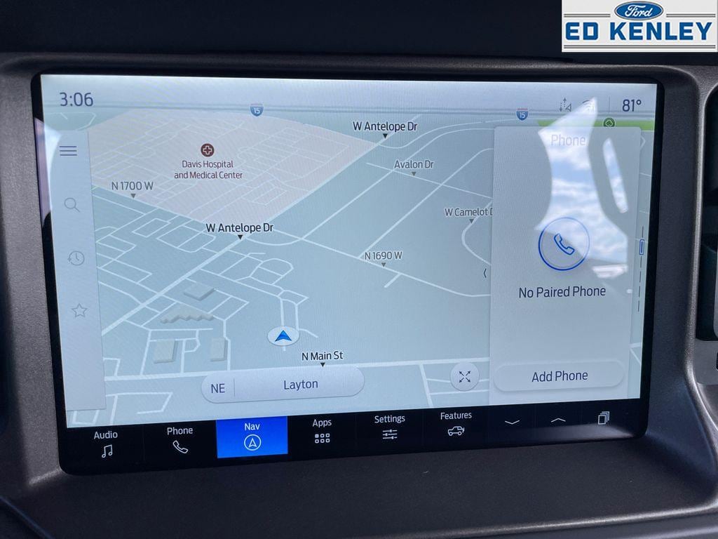 Enjoy the heated seats in it you will never buy a vehicle without them. Everyone loves the comfort of having a warm seat on those cold winter days. You'll never again be lost in a crowded city or a country region with the navigation system on the vehicle. An off-road package is installed on this Ford Bronco so you are ready for your four-wheeling best. This unit offers Apple CarPlay for seamless connectivity. Never get into a cold vehicle again with the remote start feature on the Ford Bronco. Bluetooth technology is built into this Ford Bronco, keeping your hands on the steering wheel and your focus on the road. The Ford Bronco keeps you comfortable with Auto Climate. The rear parking assist technology on this Ford Bronco will put you at ease when reversing. The system alerts you as you get closer to an obstruction. It warns of approaching vehicles with Cross-Traffic Alert.