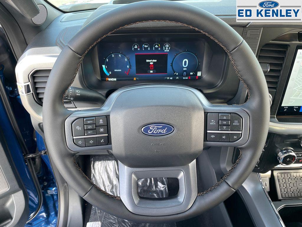 FX4 Off-Road Package: Tray Style Floor Liner Without Carpet Mats; Off-Road Tuned Front Shock Absorbers; Skid Plates; Monotube Rear Shocks; Rock Crawl Mode; 4x4 FX4 Off-Road Bodyside Decal; Hill Descent Control. Bed Utility Package: 4 Pickup Box Tie-Down Plates; 6 Extended Running Boards; LED Box Lighting; Pro Access Tailgate; Power Tailgate. Equipment Group 502A High: Ambient Lighting - Ice Blue Color Only; Electronic 10-Speed Automatic Transmission; 7. 100 lbs Payload Package GVWR; ActiveX Trimmed Bucket Seats; 20 Chrome-Like PVD Wheels; B&O Unleashed Sound System by Bang & Olufsen Radio; 2nd Row Heated Seats; 6 Extended Angular Bright Anodized Step Bar; Power-Sliding Rear Window; Heads-Up Display; Illuminated Driver and Passenger Visors; 275/60R20 All-Terrain Tires. Mobile Office Package: Wireless Charging; Partitioned Lockable Rear Storage; Console Worksurface. Tow/haul Package: Integrated Trailer Brake Controller; Electronic Locking with 3.55 Axle Ratio. Electronic Locking with 3.55 Axle Ratio. Power Telescoping/glass/folding Trailer Tow Mirrors. Atlas Blue Metallic. SecuriCode Keyless-Entry Keypad. Skid Plates. **Equipment listed is based on original vehicle build and subject to change. Please confirm the accuracy of the included equipment by calling the dealer prior to purchase.**