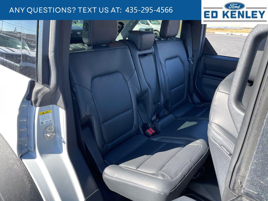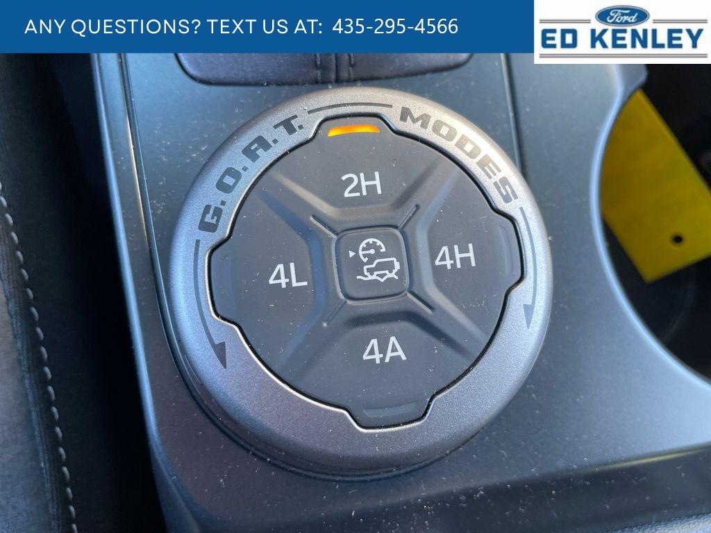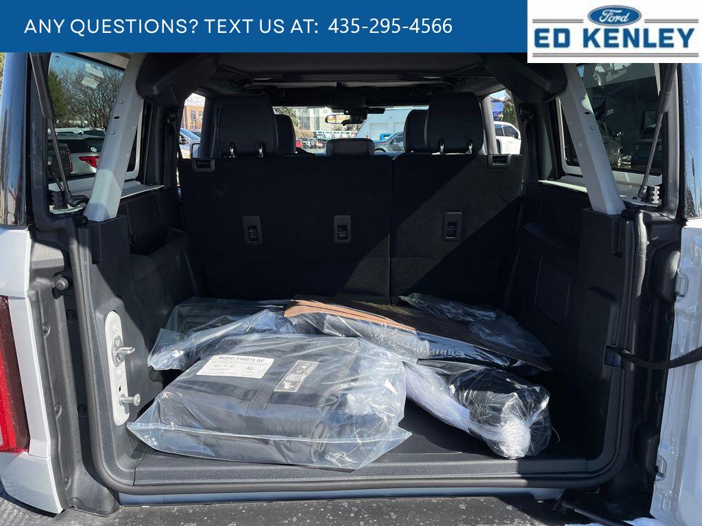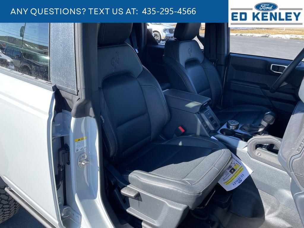 Black Appearance Package: LT265/70R17 All-Terrain Tires; Black-Painted Molded-In-color Grille; Black Molded-In-color Fender Flares; Black Molded-In-color Sideview Mirror Caps; 17 Black High Gloss-Painted Steel Wheels; Black Molded-In-color Door Handles. Equipment Group 222A Mid Package: Rear Parking Sensors; Pro Power Onboard - 400W; Dual Smart Charging USB Ports; 2.3L EcoBoost I-4 Engine; Front Row Heated Seats; Driver and Front Passenger Illuminated Sliding Visor Vanity Mirrors; AM/FM Stereo; Dual-Zone Electronic Automatic Temperature Control; Connected Navigation; Ambient Footwell Lighting; Remote Start System; 2-Door Intelligent Access with Lock/unlock. Ford Co-Pilot360: Auto High-Beam Headlamps; Rear View Camera; Pre-Collision Assist with Automatic Emergency Braking; Blind Spot Information System (BLIS); Lane-Keeping System. Black Diamond Package: Rock Rails; LT265/70R17 All-Terrain Tires; Washout Capable Rubberized Flooring; 17 Black High Gloss-Painted Steel Wheels; Powder Coated Steel Front and Rear Bumpers; Full Vehicle Steel Bash Plates; Auxiliary Switches; LED Fog Lamps. Sasquatch Package. Shadow Black Painted Hard Top. Marine Grade Vinyl Bucket Seats. Ford Performance Heavy-Duty Modular Front Bumper. Hard Top Sound Deadening Headliner. Avalanche Gray. Front and Rear Floor Liners Without Carpet Floor Mats. Front Row Top Panels and Door Storage Bags. **Equipment listed is based on original vehicle build and subject to change. Please confirm the accuracy of the included equipment by calling the dealer prior to purchase.**