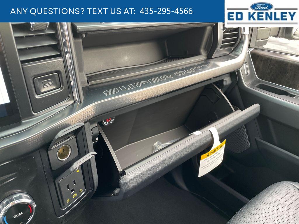 with XM/Sirus Satellite Radio you are no longer restricted by poor quality local radio stations while driving this vehicle. Anywhere on the planet, you will have hundreds of digital stations to choose from. The leather seats in this vehicle are a must for buyers looking for comfort, durability, and style. Keep your hands warm all winter with a heated steering wheel in it . Bluetooth technology is built into this vehicle, keeping your hands on the steering wheel and your focus on the road. Protect this vehicle from unwanted accidents with a cutting edge backup camera system. Never get into a cold vehicle again with the remote start feature on this Ford F-350. You'll never again be lost in a crowded city or a country region with the navigation system on this vehicle. This vehicle keeps you comfortable with Auto Climate. With the keyless entry system on this 1 ton pickup you can pop the trunk without dropping your bags from the store.