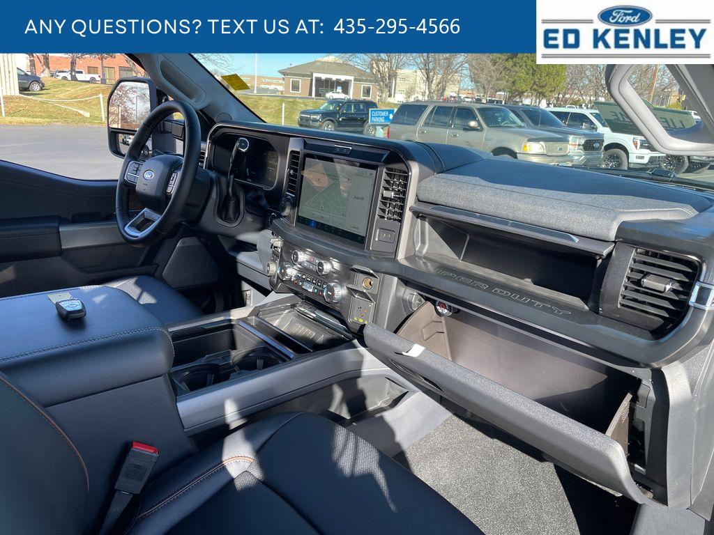 Black Appearance Package: Rear Wheel Well Liners; Black Painted Front Grille Surround; Ebony Black Painted Mirror Caps; Tough Bed Spray-In Bedliner; Body Color Front and Rear Bumpers; 6 Ebony Black Angular Running Boards. Lariat Premium Package. Ford Co-Pilot 360 Assist 2.0: Pre-Collision Assist; Post-Collision Braking; BLIS with Cross-Traffic Alert; Lane-Keeping System; Front and Rear Parking Sensors; Automatic High Beam; Adaptive Cruise Control with Stop-And-Go. FX4 Off-Road Package: Transfer Case and Fuel Tank Skid Plates; Hill Descent Control; Off-Road Specifically Tuned Shock Absorbers; Unique FX4 Off-Road Box Decal. Lariat Ultimate Package: 4-Way Adjustable Headrests; Tailgate Step and Handle; Head-Up Display; Power-Deployable Running Boards. Order Code 618A: 18 Bright Machined and Carbonized Gray Aluminum Wheels; Front ActiveX Trimmed 40/console/40 Seats; LT275/65Rx18E BSW A/S Tires; B&O Sound System by Bang and Olufsen. Power-Deployable Running Boards. Star White Metallic TC. Pro Power Onboard - 2kW. 5th Wheel/gooseneck Hitch Prep Package. Tough Bed Spray-In Bedliner. Power-Sliding Rear-Window with Defrost. SecuriCode Keyless Entry Keypad (driver's Side). Electronic-Locking with 3.55 Axle Ratio. Tailgate Step and Handle. Snow Plow Prep Package. Rapid-Heat Supplemental Cab Heater. Upfitter Switches (6). All-Weather Floor Mats. Rear Wheel Well Liners. LED Roof Clearance Lights. **Equipment listed is based on original vehicle build and subject to change. Please confirm the accuracy of the included equipment by calling the dealer prior to purchase.**