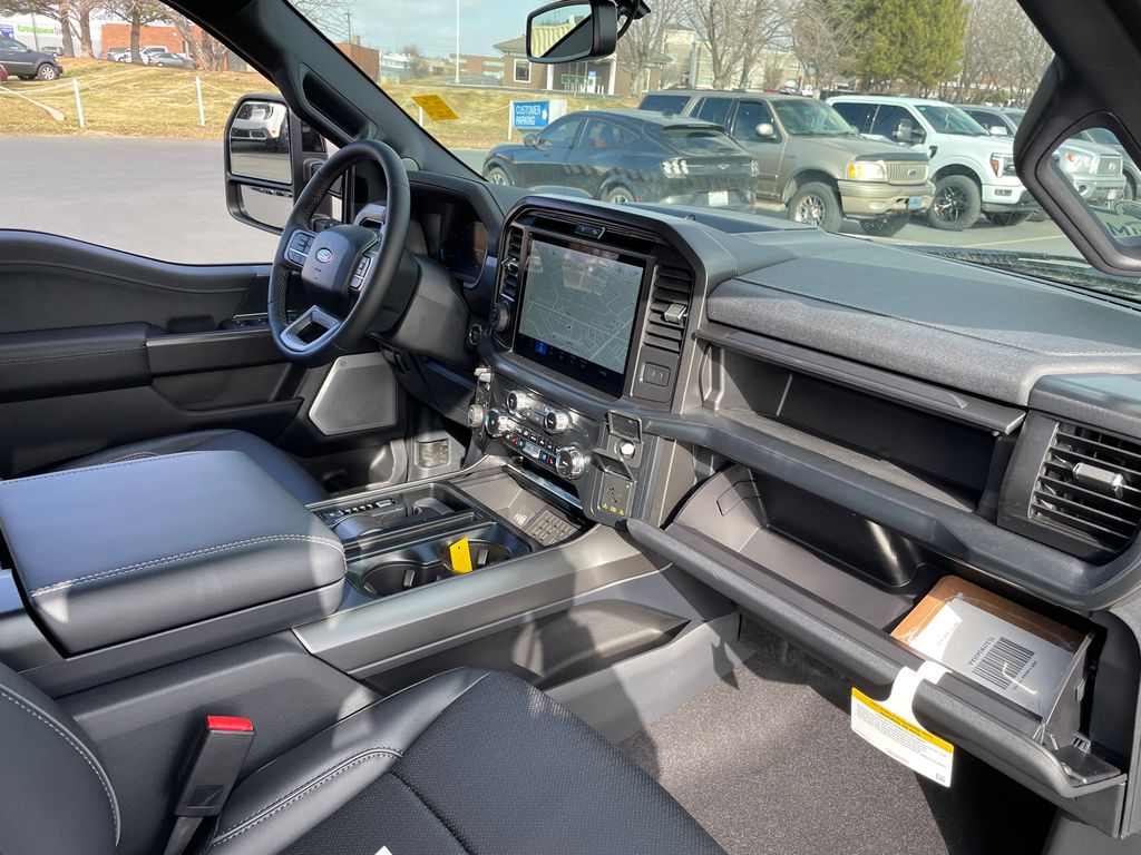 Lariat Black Appearance Package: Black Grille; ActiveX Trimmed Bucket Seats; Black Exterior Badging; Gray Box Side Decal; Body-Color Front and Rear Bumpers; Body-Color Skull Caps and Door Handles; Black Taillamp Bezels; Matte Black Tailgate F-150 Decal; Dark Interior Appliques. FX4 Off-Road Package: Tray Style Floor Liner Without Carpet Mats; Off-Road Tuned Front Shock Absorbers; Skid Plates; Monotube Rear Shocks; Rock Crawl Mode; 4x4 FX4 Off-Road Bodyside Decal; Hill Descent Control. Bed Utility Package: Pro Access Tailgate; Bed Storage Boxes; Tailgate Step with Work Surface; 4 Pickup Box Tie-Down Plates; 6 Extended Running Boards; LED Box Lighting; Power Tailgate. Equipment Group 502A High: Power-Adjustable Pedals with Memory; Ambient Lighting - Ice Blue Color Only; B&O Unleashed Sound System by Bang & Olufsen Radio; 2nd Row Heated Seats; 6 Extended Angular Bright Anodized Step Bar; Power-Sliding Rear Window; Illuminated Driver and Passenger Visors; Head-Up Display; 275/60R20 All-Terrain Tires. Mobile Office Package: Wireless Charging; Partitioned Lockable Rear Storage; Console Worksurface. Tow/haul Package: Integrated Trailer Brake Controller. Pro Power Onboard - 7.2KW. Head-Up Display. Ruby Red Met Tinted CC. Driver's Side SecuriCode Keyless-Entry Keypad. Max Tow Electronic Locking W/3.73 Axle Ratio. Power Telescoping/glass/folding Trailer Tow Mirrors. Wheel Well Liner. Skid Plates. **Equipment listed is based on original vehicle build and subject to change. Please confirm the accuracy of the included equipment by calling the dealer prior to purchase.**