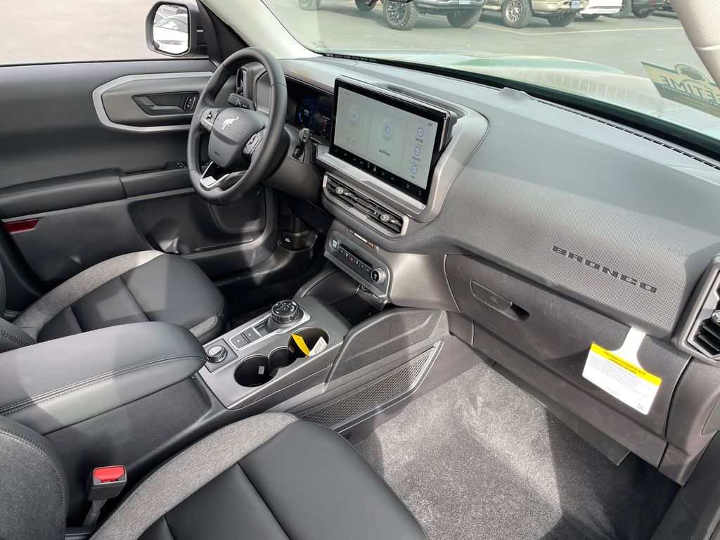 I got a 2025 Big Bend with the black diamond off road package. The steel modular front and rear in combination with bush guard gives this year model. A very aggressive off road look. With the ability to easily mount accessories and power them with the factory installed auxiliary switches. Hitch receiver seamlessly mounted into the rear steel bumper flanked by some very chunky recovery points. The upgraded aluminum rims wrapped with Continental all-terrains. It make this the most capable bronco sport yet. The interior of the 2025 has been updated with a new 13 inch touchscreen with Android Auto and apple car play. The lines of the dash flow elegantly from the new infotainment screen to the new all digital 12 inch gauge chaster. Toggling through the different modes on the gauge chaster is very intuitive, and all the displays are laid out very cleanly. Moving from gauge chaster the center storage cubby just below the infotainment screen there is a wireless charger and USB/ USB-c ports. The passenger side of that same cubby gets a handle and a matching one on the roof just in case the driver bucks a little too much. The passenger also gets a mesh storage area. That leads us to the fact this vehicle has tons of storage options all throughout. You have pockets on the sides of the front two seat big enough for the latest new phones. Very generous door storage on all four doors plus huge glove box and center console with 12 volt outlet. The back side of the center console has air vents and another 12 volt outlet plus a 110 outlet. Now getting to the cargo area it is massive for a crossover SUV. With off road package you get a cargo management system and a very nice rubber mat. Under that there is a full size tire plus scissor jack and funnel to use with the capless filler system. On the liftgate there isa pair of very bright led lights turned on with a switch in the cargo area. This feature packed vehicle has tons awesome gadgets and hidden a little homages I spend all day just talk that. At the end of the day it is car. So how does it drive. It is wonderful, the steering and pedal response is beautiful. Rides very smooth and little to no road noise going down the highway. The active cruise control and co-pilot 360 have been very handy. The car literally drives itself most of the time. There is not enough good things I could same about this car. I love it and you pick one too. You will see what I mean. - 5.0