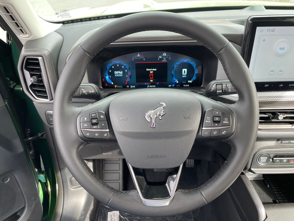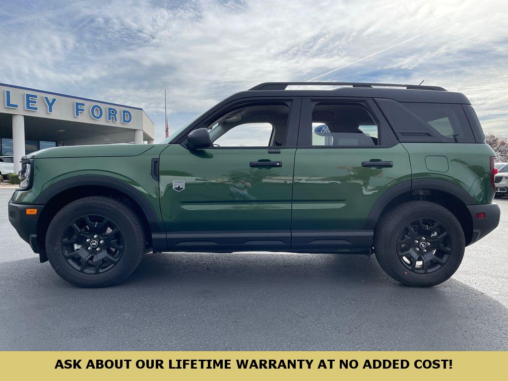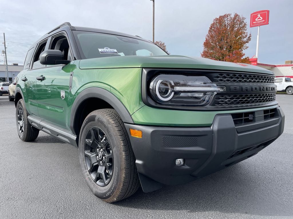 Start it from inside with remote start. The rear parking assist technology on this vehicle will put you at ease when reversing. The system alerts you as you get closer to an obstruction. The vehicle comes equipped with Android Auto for seamless smartphone integration on the road. Protect the Ford Bronco Sport from unwanted accidents with a cutting edge backup camera system. Bluetooth technology is built into the Ford Bronco Sport, keeping your hands on the steering wheel and your focus on the road. This vehicle offers Apple CarPlay for seamless connectivity. The leather seats in it are a must for buyers looking for comfort, durability, and style. This 2025 Ford Bronco Sport offers Automatic Climate Control for personalized comfort. This mid-size suv has automated speed control that adjusts to maintain a safe following distance, enhancing highway driving convenience. This vehicle contains elegant lines finished with an exquisite green color.