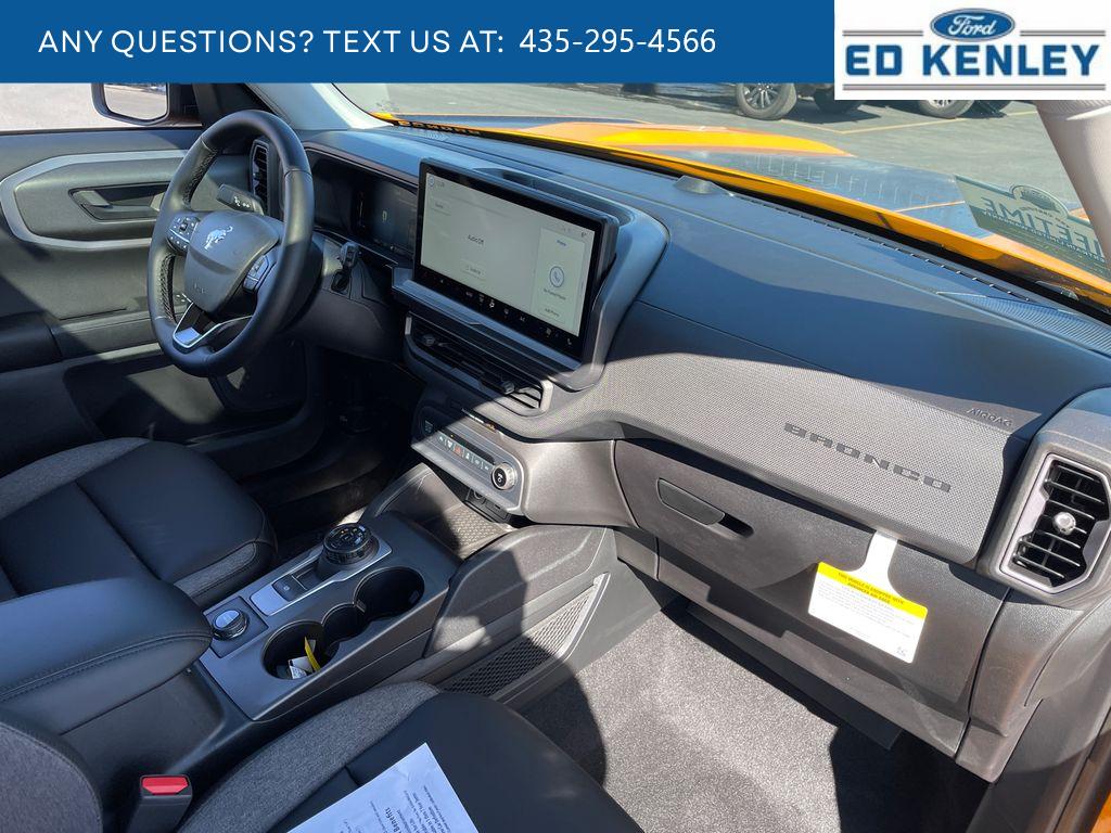 Black Appearance Package: Painted Shadow Black Roof; Cargo Mat; 17 Matte Black-Painted Aluminum Wheels; Front and Rear Floor Liners Without Carpet Mats; Liftgate with Black BRONCO SPORT Lettering; Carbon Black Grille with Black Painted BRONCO Lettering; Premium Trimmed Front Sport Contour Bucket Seats. Convenience Package: Premium Wrapped Steering Wheel; Liftgate with Black BRONCO SPORT Lettering; Front Driver/passenger Seat Back Map Pockets; Heated 8-Way Power Driver's Seat; LED Fog Lamps. Equipment Group 200A Standard Package: 8-Speed Automatic Transmission; 225/65R17 102H All-Season BSW Tires; AM/FM Stereo; 1.5L EcoBoost Engine. Power Moonroof. Orange Fury Metallic TC. Front and Rear Floor Liners Without Carpet Mats. Cargo Mat. **Equipment listed is based on original vehicle build and subject to change. Please confirm the accuracy of the included equipment by calling the dealer prior to purchase.**