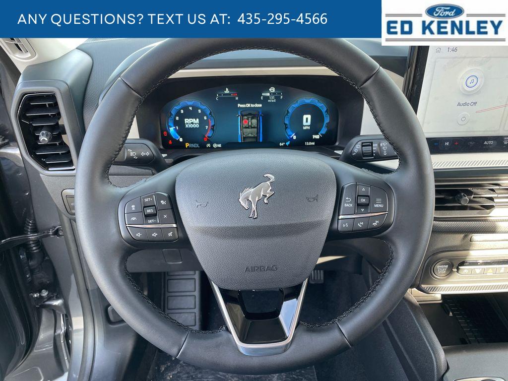 Never get into a cold vehicle again with the remote start feature on it. See what's behind you with the back up camera on the Ford Bronco Sport. Apple CarPlay: Seamless smartphone integration for the vehicle - stay connected and entertained on the go! It has automated speed control that adjusts to maintain a safe following distance, enhancing highway driving convenience. Bluetooth technology is built into this unit, keeping your hands on the steering wheel and your focus on the road. The state of the art park assist system will guide you easily into any spot. This mid-size suv offers Android Auto for seamless smartphone integration. This model offers Automatic Climate Control for personalized comfort. This mid-size suv projects refinement with a racy metallic gray exterior. It has four wheel drive capabilities. Maintaining a stable interior temperature in this 2025 Ford Bronco Sport is easy with the climate control system.