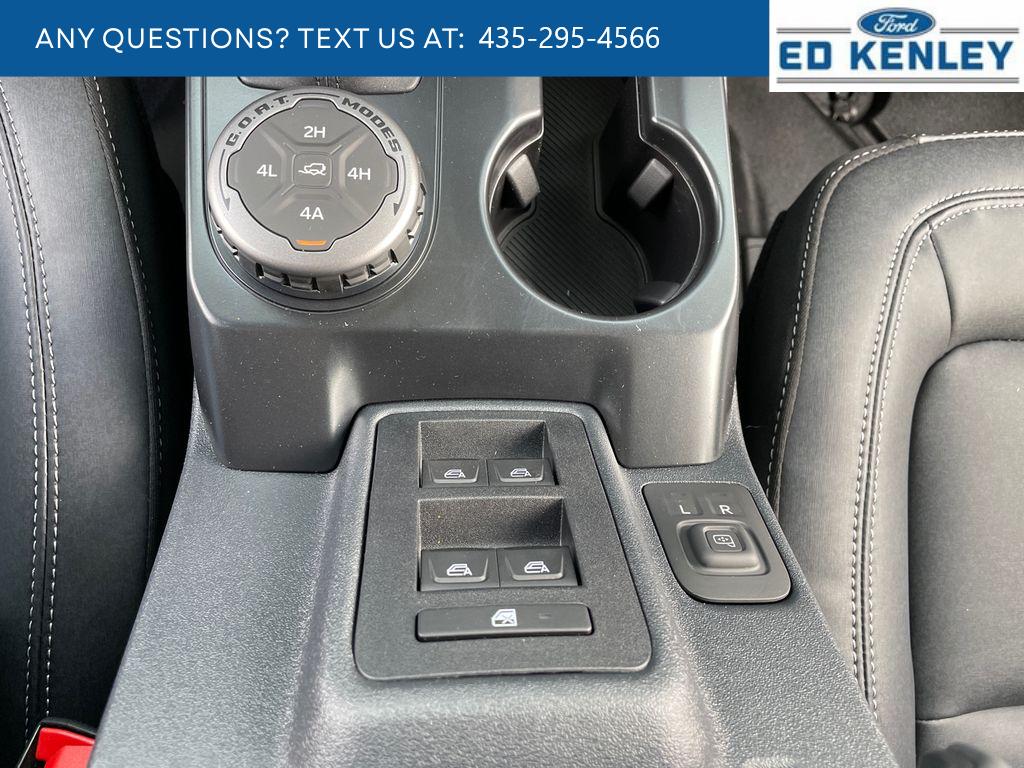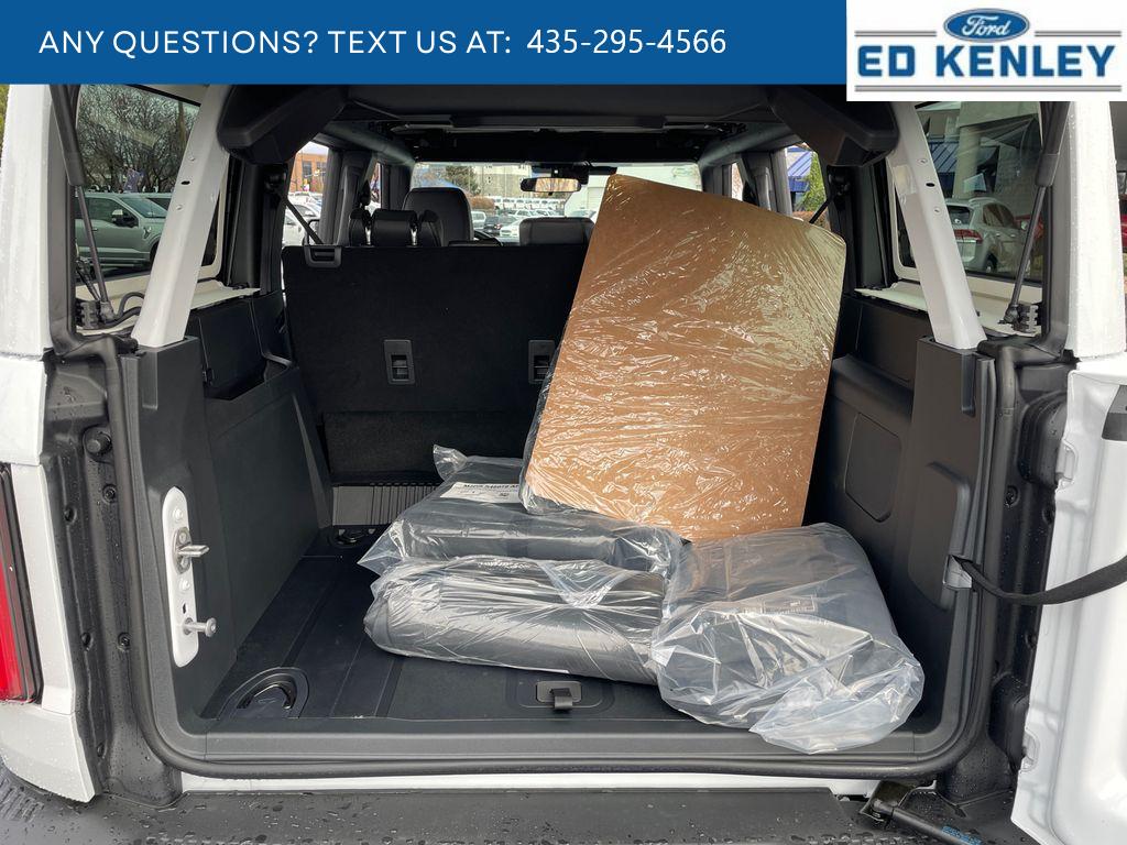 Equipment Group 332A Mid Package: Rear Parking Sensors; Power Outlet - Back Side of Center Floor Console; Dual Smart Charging USB Ports; Front Row Heated Seats; Driver and Front Passenger Illuminated Sliding Visor Vanity Mirrors; AM/FM Stereo; Marine Grade Vinyl Heated Bucket Seats; Dual-Zone Electronic Automatic Temperature Control; Connected Navigation; Ambient Footwell Lighting; Remote Start System; 2-Door Intelligent Access with Lock/unlock. Ford Co-Pilot360: Auto High-Beam Headlamps; Rear View Camera; Pre-Collision Assist with Automatic Emergency Braking; Blind Spot Information System (BLIS); Lane-Keeping System. Sasquatch Package: High Clearance Fender Flares; High Clearance Suspension; 4.7 Final Drive Ratio; LT315/70R17 Rugged-Terrain Tires; Position-Sensitive Bilstein Shock Absorbers. Body Color-Painted Hard Top. 17 Black High Gloss-Painted Aluminum Wheels. Ford Performance Heavy-Duty Modular Front Bumper. Trailer Tow Package. Hard Top Sound Deadening Headliner. Door Storage Bags. Second Row Panel Roof Bag Storage. Front and Rear Floor Liners Without Carpet Floor Mats. **Equipment listed is based on original vehicle build and subject to change. Please confirm the accuracy of the included equipment by calling the dealer prior to purchase.**