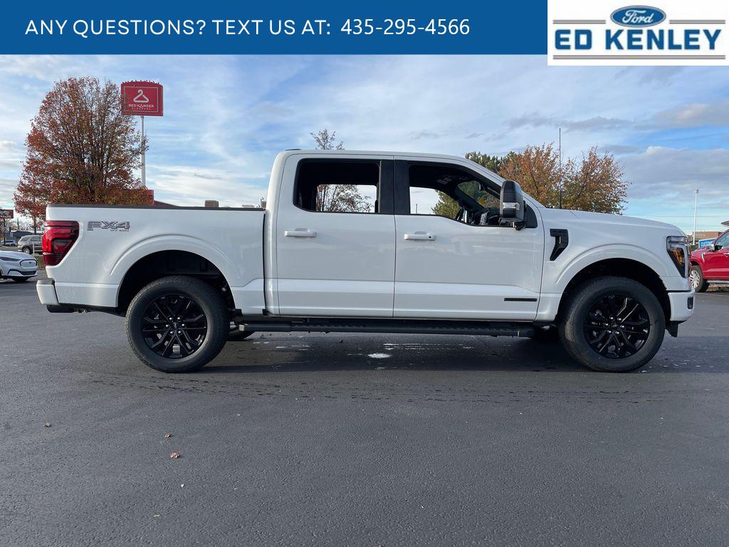 Lariat Black Appearance Package: Black Grille; ActiveX Trimmed Bucket Seats; Black Exterior Badging; Gray Box Side Decal; Body-Color Front and Rear Bumpers; Body-Color Skull Caps and Door Handles; Black Taillamp Bezels; Matte Black Tailgate F-150 Decal; Dark Interior Appliques. FX4 Off-Road Package: Tray Style Floor Liner Without Carpet Mats; Off-Road Tuned Front Shock Absorbers; Skid Plates; Monotube Rear Shocks; Rock Crawl Mode; 4x4 FX4 Off-Road Bodyside Decal; Hill Descent Control. Bed Utility Package: 4 Pickup Box Tie-Down Plates; 6 Extended Running Boards; LED Box Lighting; Pro Access Tailgate; Power Tailgate. Equipment Group 501A Mid: Power-Sliding Rear Window; 6 Angular Bright Anodized Step Bar; B&O Sound System by Bang and Olufsen; Illuminated Driver and Passenger Visors; 275/60R20 All-Terrain Tires. Mobile Office Package: Wireless Charging; Partitioned Lockable Rear Storage; Console Worksurface. Tow/haul Package: Integrated Trailer Brake Controller. Star White Metallic TC. Pro Power Onboard - 7.2KW. 6 Angular Bright Anodized Step Bar. Max Tow Electronic Locking W/3.73 Axle Ratio. Power Telescoping/glass/folding Trailer Tow Mirrors. SecuriCode Keyless-Entry Keypad. Wheel Well Liner. Skid Plates. **Equipment listed is based on original vehicle build and subject to change. Please confirm the accuracy of the included equipment by calling the dealer prior to purchase.**
