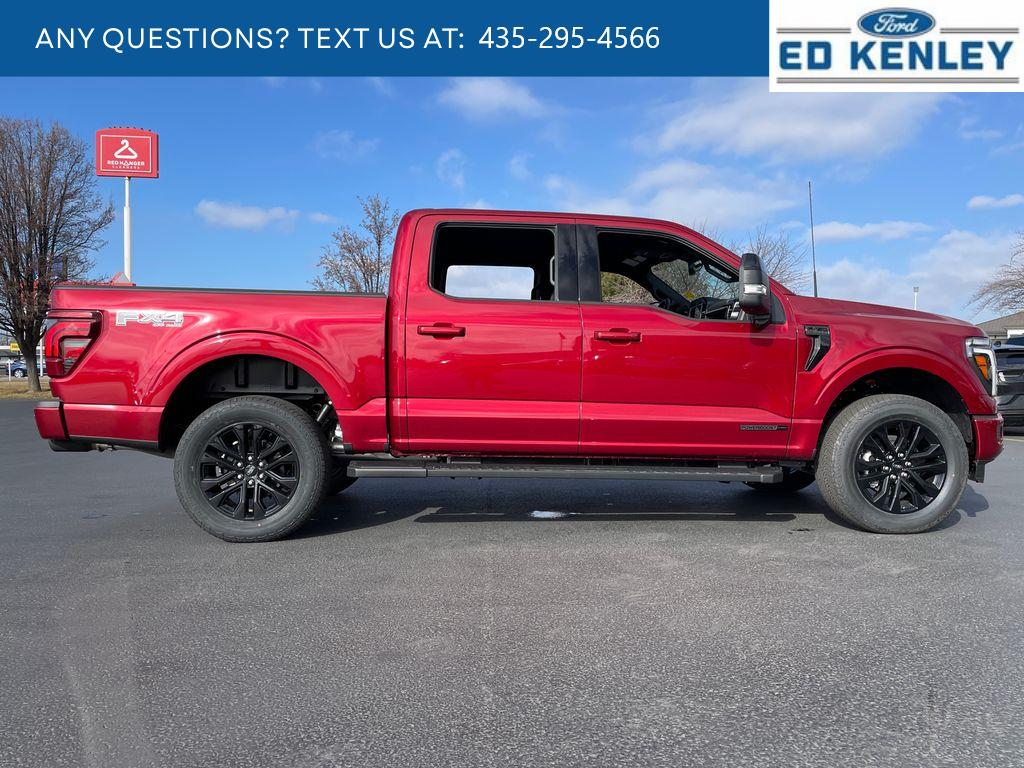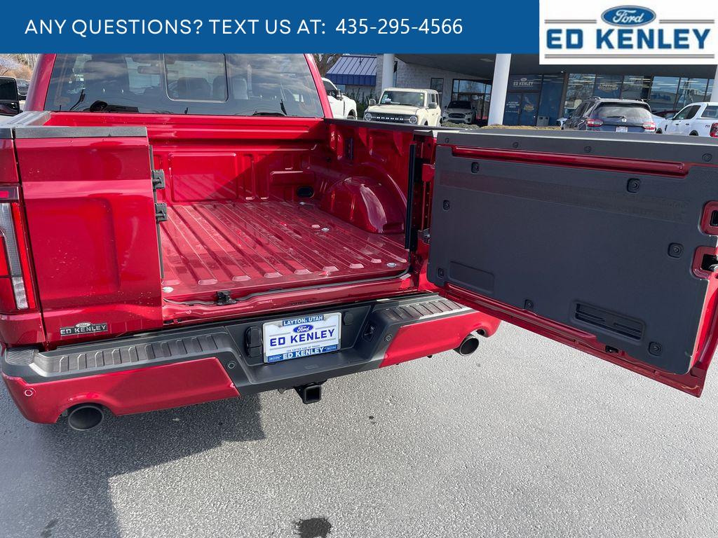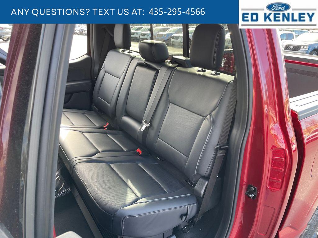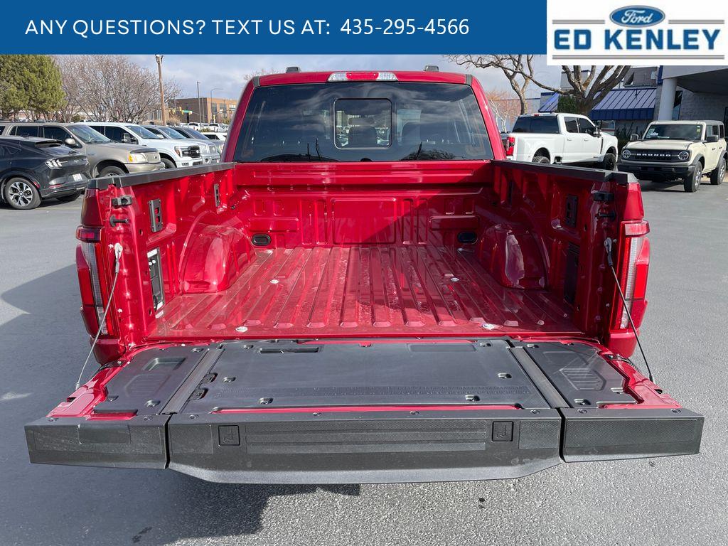 Lariat Black Appearance Package: Black Grille; ActiveX Trimmed Bucket Seats; Black Exterior Badging; Gray Box Side Decal; Body-Color Front and Rear Bumpers; Body-Color Skull Caps and Door Handles; Black Taillamp Bezels; Matte Black Tailgate F-150 Decal; Dark Interior Appliques. FX4 Off-Road Package: Tray Style Floor Liner Without Carpet Mats; Off-Road Tuned Front Shock Absorbers; Skid Plates; Monotube Rear Shocks; Rock Crawl Mode; 4x4 FX4 Off-Road Bodyside Decal; Hill Descent Control. Bed Utility Package: Pro Access Tailgate; Bed Storage Boxes; Tailgate Step with Work Surface; 4 Pickup Box Tie-Down Plates; 6 Extended Running Boards; LED Box Lighting; Power Tailgate. Equipment Group 502A High: Power-Adjustable Pedals with Memory; Ambient Lighting - Ice Blue Color Only; B&O Unleashed Sound System by Bang & Olufsen Radio; 2nd Row Heated Seats; 6 Extended Angular Bright Anodized Step Bar; Power-Sliding Rear Window; Illuminated Driver and Passenger Visors; Head-Up Display; 275/60R20 All-Terrain Tires. Mobile Office Package: Wireless Charging; Partitioned Lockable Rear Storage; Console Worksurface. Tow/haul Package: Integrated Trailer Brake Controller. Pro Power Onboard - 7.2KW. Head-Up Display. Ruby Red Met Tinted CC. Driver's Side SecuriCode Keyless-Entry Keypad. Max Tow Electronic Locking W/3.73 Axle Ratio. Power Telescoping/glass/folding Trailer Tow Mirrors. Wheel Well Liner. Skid Plates. **Equipment listed is based on original vehicle build and subject to change. Please confirm the accuracy of the included equipment by calling the dealer prior to purchase.**