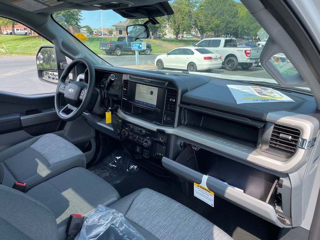 Never get into a cold vehicle again with the remote start feature on it. The vehicle's Cross-Traffic Alert: Safeguarding you from unexpected traffic when reversing. The rear parking assist technology on it will put you at ease when reversing. The system alerts you as you get closer to an obstruction. Bluetooth technology is built into this unit, keeping your hands on the steering wheel and your focus on the road. See what's behind you with the back up camera on this model. This Ford F-350 has a V8, 6.7L high output engine. Greater towing safety becomes standard with the installed trailer brake. With the keyless entry system on this Ford F-350 you can pop the trunk without dropping your bags from the store. When you encounter slick or muddy roads, you can engage the four wheel drive on this vehicle and drive with confidence. This 1 ton pickup embodies class and sophistication with its refined white exterior.