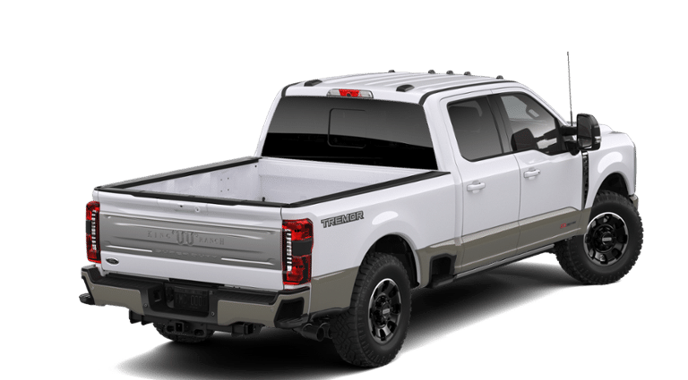 Tremor Off-Road Package: Tremor Off-Road Decal; Transfer Case and Fuel Tank Skid Plates; LT285/75R18E BSW A/T Tires; LT285/75R18E BSW Spare Tire; Textured Matte Finish Off-Road Running Boards; Conventional Road Spare Wheel; 18 Ebony Black Machined and Painted Aluminum Wheels. Order Code 710A: Unique King Ranch Leather 40/console/40 Seats; TorqShift 10-Speed Automatic Transmission; B&O Unleashed Sound System by Bang & Olufsen Radio. Pro Power Onboard - 2kW. 5th Wheel/gooseneck Hitch Prep Package. Onboard Scales and Smart Hitch. Max Recline Seats. SecuriCode Keyless Entry Keypad (driver's Side). Electronic-Locking with 3.55 Axle Ratio. Rapid-Heat Supplemental Cab Heater. Front and Rear Wheel Well Liners. Upfitter Switches (6). All-Weather Floor Mats. LED Roof Clearance Lights. **Equipment listed is based on original vehicle build and subject to change. Please confirm the accuracy of the included equipment by calling the dealer prior to purchase.**