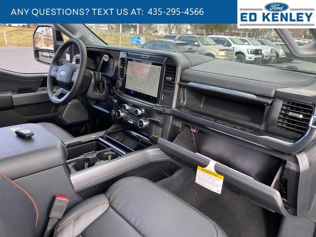 Black Appearance Package: Rear Wheel Well Liners; Black Painted Front Grille Surround; Ebony Black Painted Mirror Caps; Tough Bed Spray-In Bedliner; Body Color Front and Rear Bumpers; 6 Ebony Black Angular Running Boards. Lariat Premium Package. Ford Co-Pilot 360 Assist 2.0: Pre-Collision Assist; Post-Collision Braking; BLIS with Cross-Traffic Alert; Lane-Keeping System; Front and Rear Parking Sensors; Automatic High Beam; Adaptive Cruise Control with Stop-And-Go. FX4 Off-Road Package: Transfer Case and Fuel Tank Skid Plates; Hill Descent Control; Off-Road Specifically Tuned Shock Absorbers; Unique FX4 Off-Road Box Decal. Lariat Ultimate Package: 4-Way Adjustable Headrests; Tailgate Step and Handle; Head-Up Display; Power-Deployable Running Boards; B&O Unleashed Sound System by Bang & Olufsen Radio. Order Code 618A: 18 Bright Machined and Carbonized Gray Aluminum Wheels; Front ActiveX Trimmed 40/console/40 Seats; LT275/65Rx18E BSW A/S Tires. Twin Panel Power Moonroof. Power-Deployable Running Boards. Glacier Gray Met Tri-Coat. Pro Power Onboard - 2kW. 5th Wheel/gooseneck Hitch Prep Package. Onboard Scales and Smart Hitch. Tough Bed Spray-In Bedliner. Max Recline Seats. Power-Sliding Rear-Window with Defrost. Illuminated Front Emblem. SecuriCode Keyless Entry Keypad (driver's Side). Electronic-Locking with 3.55 Axle Ratio. Tailgate Step and Handle. Rapid-Heat Supplemental Cab Heater. Upfitter Switches (6). All-Weather Floor Mats. Rear Wheel Well Liners. LED Roof Clearance Lights. **Equipment listed is based on original vehicle build and subject to change. Please confirm the accuracy of the included equipment by calling the dealer prior to purchase.**