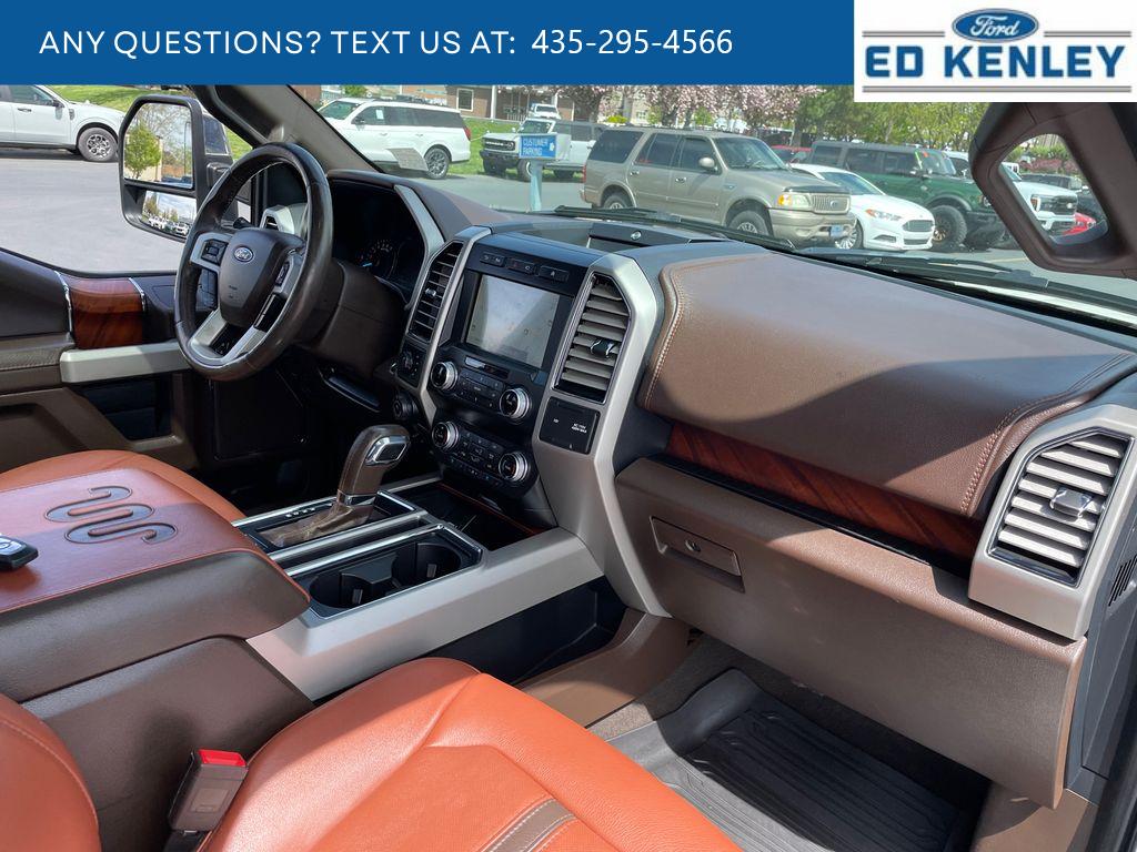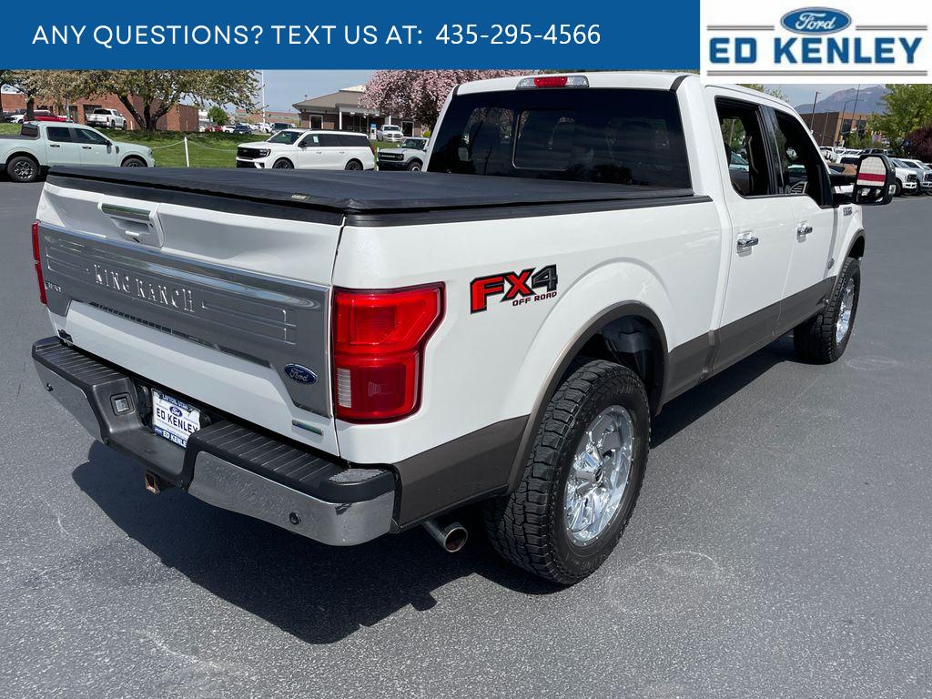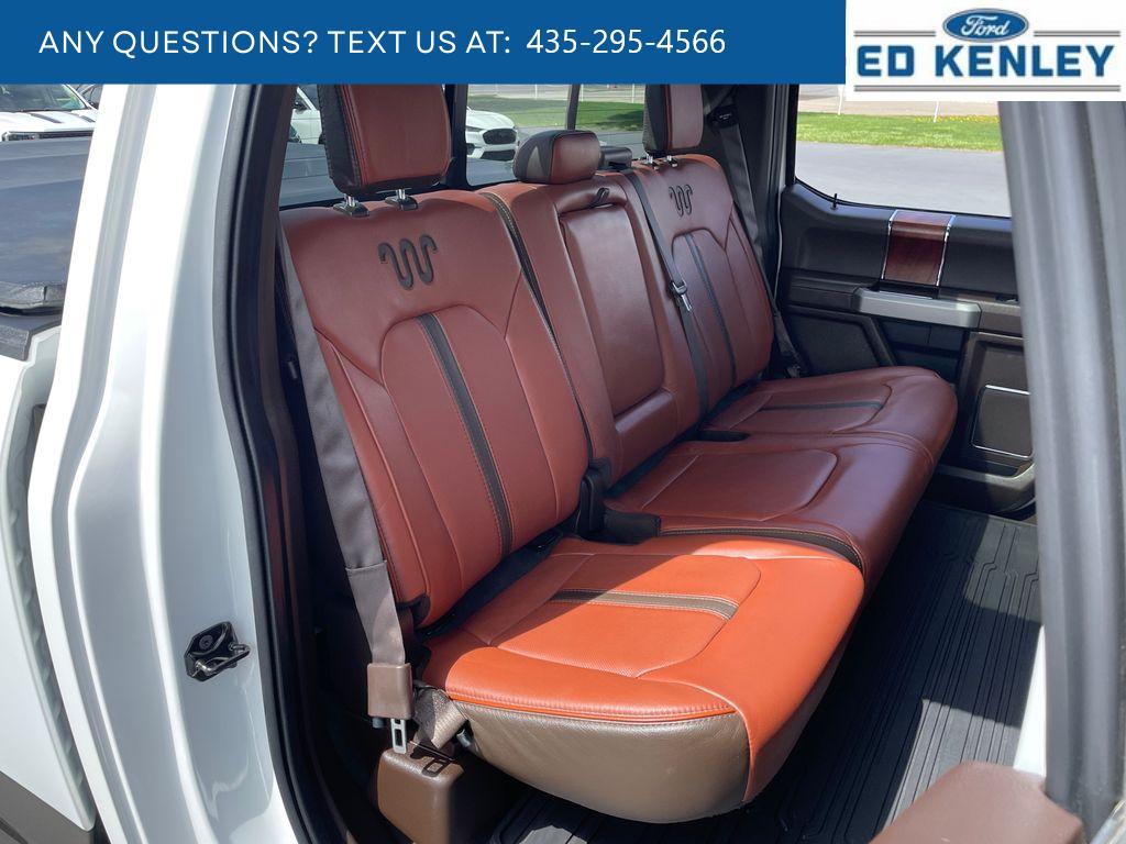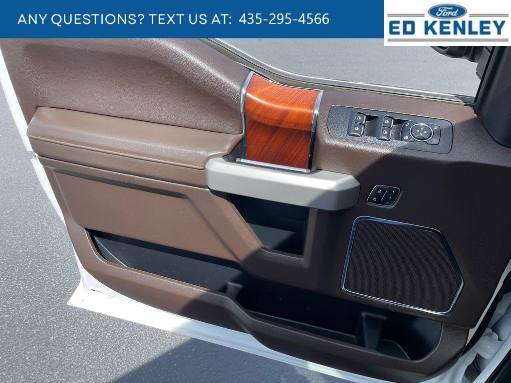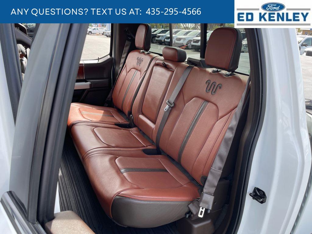 King Ranch Chrome Appearance Package: Chrome Door Handles with Body-Color Strap; Front and Rear Chrome Bumpers; Bright Belt Moldings; P275/55R20 OWL A/T Tires; 20 Chrome-Like PVD Wheels; Chrome Skull Caps on Exterior Mirrors. Equipment Group 601A Luxury: Electronic 10-Speed Automatic Transmission; Tailgate Step with Tailgate Lift Assist; P275/55R20 OWL A/T Tires; Power-Deployable Running Boards; 7. 050 lbs Payload Package GVWR; King Ranch Leather Bucket Seats; Inflatable Rear Safety Belts; B&O Sound System by Bang and Olufsen; Multi-Contour Driver and Passenger Seats. Max Trailer Tow Package: Pro Trailer Backup Assist; Integrated Trailer Brake Controller; Electronic Locking with 3.55 Axle Ratio; Class IV Trailer Hitch Receiver; Extended Range 36 Gallon Fuel Tank; Engine Oil Cooler; Upgraded Front Stabilizer Bar. FX4 Off-Road Package: Off-Road Tuned Front Shock Absorbers; Skid Plates; 4x4 FX4 Off-Road Bodyside Decal; Hill Descent Control; Tray Style Floor Liner. Technology Package: 360 Camera with Split-View Display; Active Park Assist. Twin Panel Moonroof. Adaptive Cruise Control. Star White Metallic TC. Star White Metallic TC. Electronic Locking with 3.55 Axle Ratio. Extended Range 36 Gallon Fuel Tank. Tailgate Step with Tailgate Lift Assist. Integrated Trailer Brake Controller. Telescoping Power Glass Trailer Tow Mirrors with Heat. Skid Plates. Tray Style Floor Liner. **Equipment listed is based on original vehicle build and subject to change. Please confirm the accuracy of the included equipment by calling the dealer prior to purchase.**