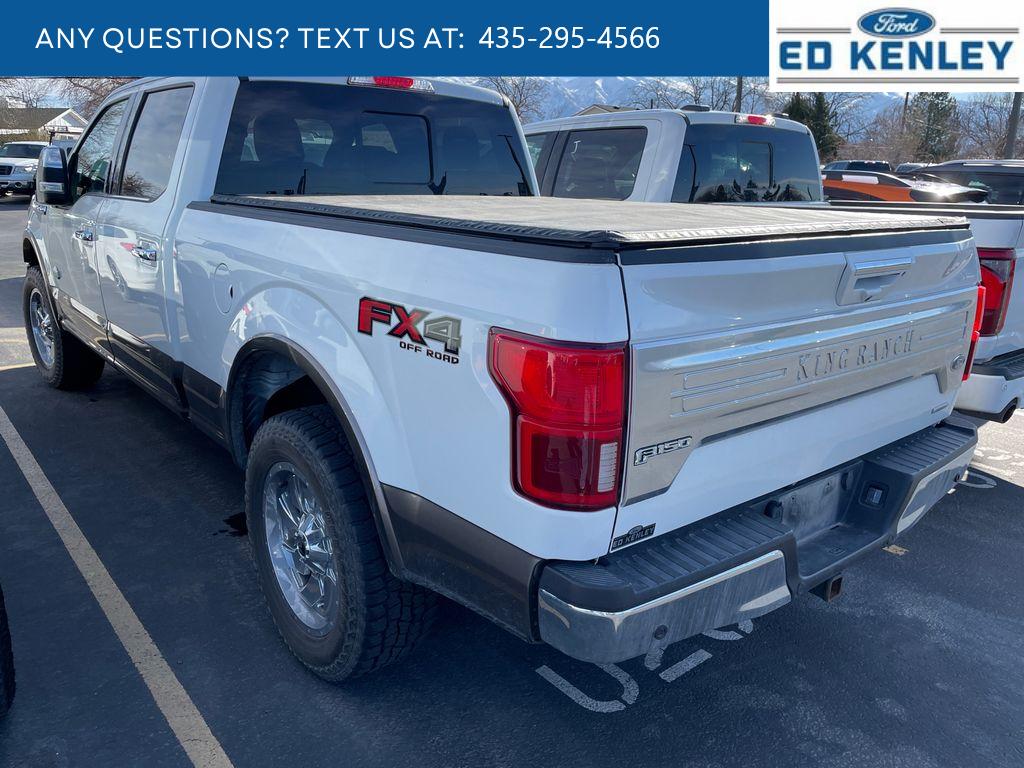 King Ranch Chrome Appearance Package: Chrome Door Handles with Body-Color Strap; Front and Rear Chrome Bumpers; Bright Belt Moldings; P275/55R20 OWL A/T Tires; 20 Chrome-Like PVD Wheels; Chrome Skull Caps on Exterior Mirrors. Equipment Group 601A Luxury: Electronic 10-Speed Automatic Transmission; Tailgate Step with Tailgate Lift Assist; P275/55R20 OWL A/T Tires; Power-Deployable Running Boards; 7. 050 lbs Payload Package GVWR; King Ranch Leather Bucket Seats; Inflatable Rear Safety Belts; B&O Sound System by Bang and Olufsen; Multi-Contour Driver and Passenger Seats. Max Trailer Tow Package: Pro Trailer Backup Assist; Integrated Trailer Brake Controller; Electronic Locking with 3.55 Axle Ratio; Class IV Trailer Hitch Receiver; Extended Range 36 Gallon Fuel Tank; Engine Oil Cooler; Upgraded Front Stabilizer Bar. FX4 Off-Road Package: Off-Road Tuned Front Shock Absorbers; Skid Plates; 4x4 FX4 Off-Road Bodyside Decal; Hill Descent Control; Tray Style Floor Liner. Technology Package: 360 Camera with Split-View Display; Active Park Assist. Twin Panel Moonroof. Adaptive Cruise Control. Star White Metallic TC. Star White Metallic TC. Electronic Locking with 3.55 Axle Ratio. Extended Range 36 Gallon Fuel Tank. Tailgate Step with Tailgate Lift Assist. Integrated Trailer Brake Controller. Telescoping Power Glass Trailer Tow Mirrors with Heat. Skid Plates. Tray Style Floor Liner. **Equipment listed is based on original vehicle build and subject to change. Please confirm the accuracy of the included equipment by calling the dealer prior to purchase.**