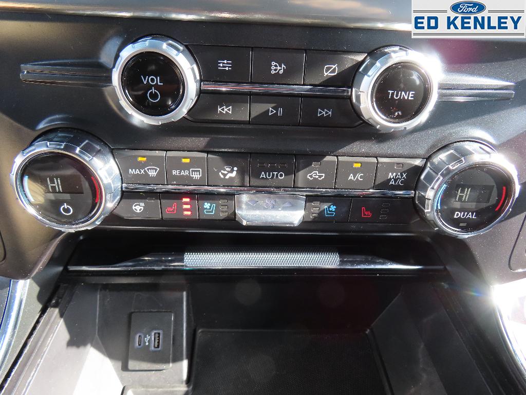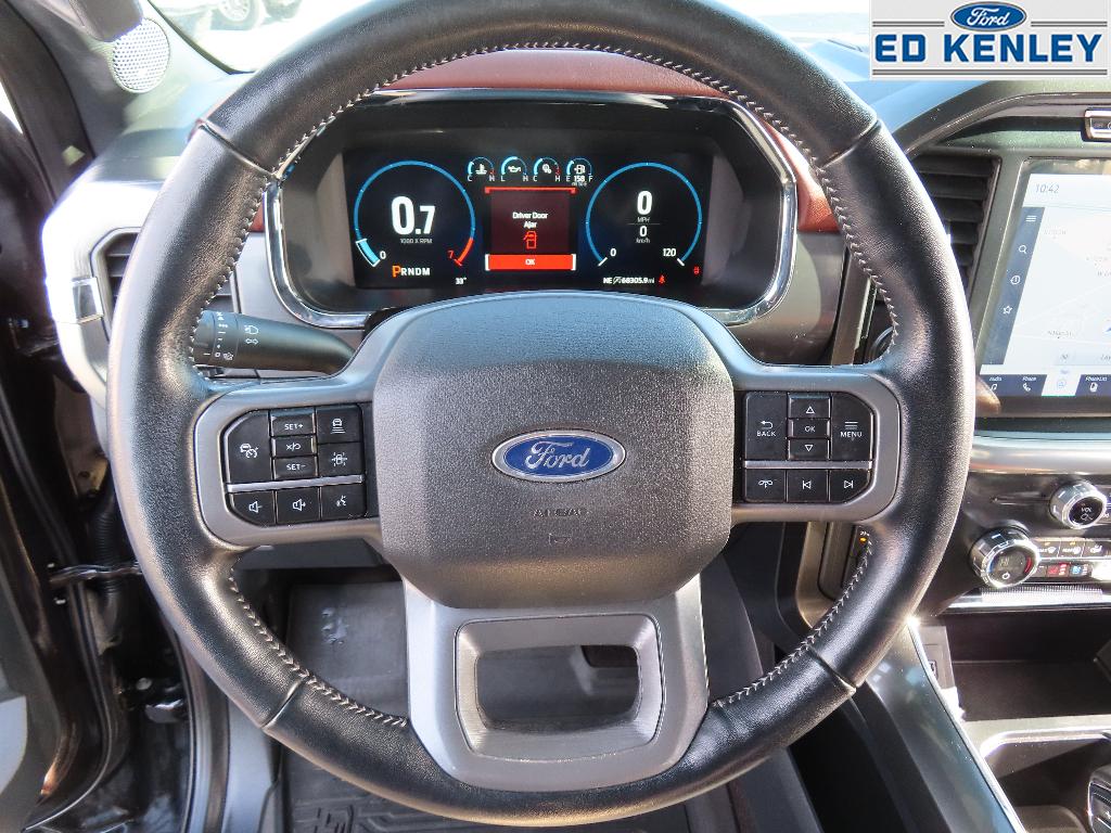 Lariat Sport Appearance Package: Box Side Decal; Chrome Single-Tip Exhaust; Body-Colour Door Handles with Body-Colour Bezel; Accent-Colour Angular Step Bar; Dark Two-Bar and One Minor Bar Style Grille; Body-Colour Front and Rear Bumpers. Equipment Group 502A High: Electronic 10-Speed Automatic Transmission; Rain-Sensing Wipers; Leather-Trimmed Bucket Seats; Glare Free Lighting; Power Tilt/telescoping Steering Column with Memory; B&O Sound System by Bang and Olufsen; Heated Rear Seats; Heated Steering Wheel; LED Projector with Dynamic Bending Headlamps. Lariat Chrome Appearance Package: Chrome Single-Tip Exhaust; Chrome Door Handles with Body-Colour Bezel; Chrome Two-Bar and One Minor Bar Style Grille; Chrome Skull Caps on Exterior Mirrors. Ford Co-Pilot360 Assist 2.0: Rain Sensing Wipers; Connected Built-In Navigation; Intersection Assist; Evasive Steering Assist; Intelligent Adaptive Cruise Control with Stop and Go. 275/60R20 BSW AT Tires. Connected Built-In Navigation. Electronic Locking with 3.55 Axle Ratio. **Equipment listed is based on original vehicle build and subject to change. Please confirm the accuracy of the included equipment by calling the dealer prior to purchase.**