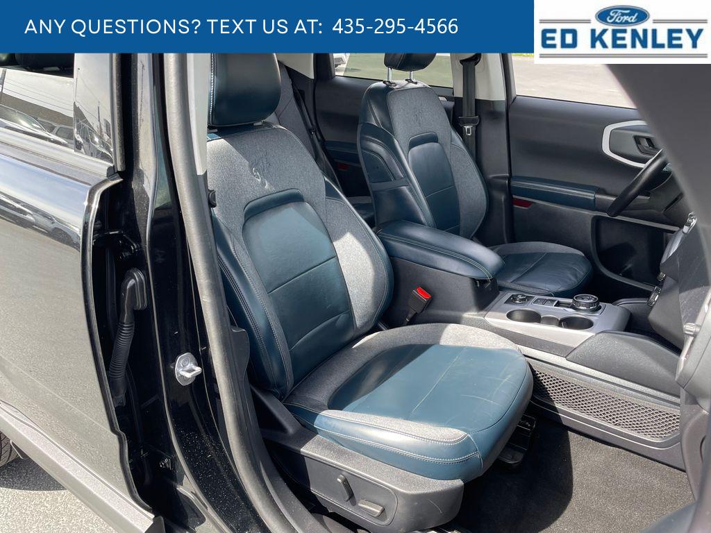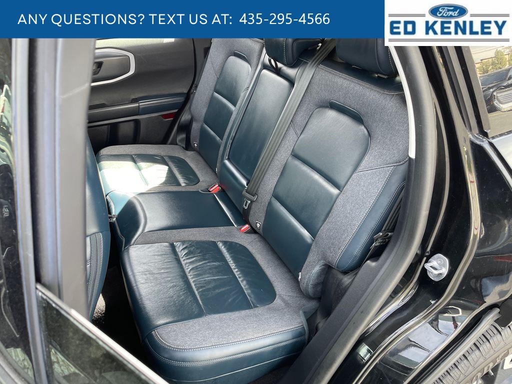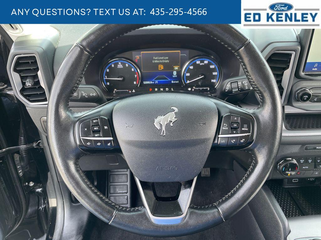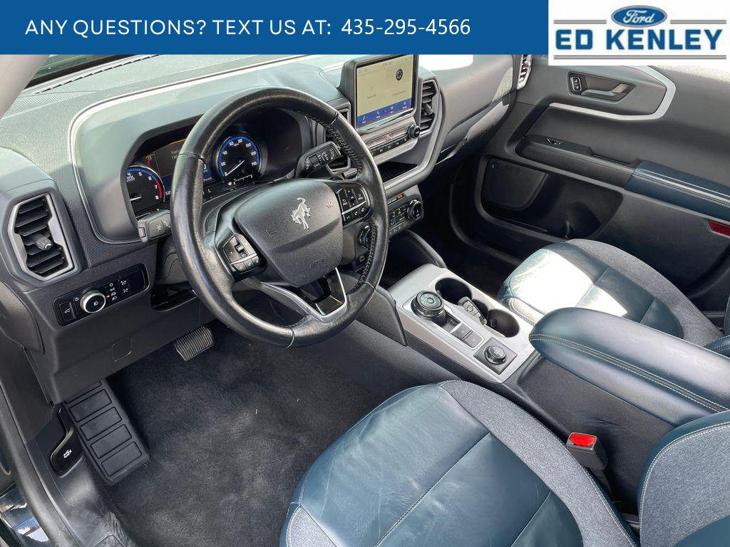 It offers Apple CarPlay for seamless connectivity. The vehicle is pure luxury with a heated steering wheel. The Ford Bronco Sport offers Android Auto for seamless smartphone integration. This model has a clean CARFAX vehicle history report. The leather seats in the vehicle are a must for buyers looking for comfort, durability, and style. The Ford Bronco Sport warns of approaching vehicles with Cross-Traffic Alert. See what's behind you with the back up camera on this vehicle. This vehicle is a certified CARFAX 1-owner. This mid-size suv keeps you comfortable with Auto Climate. The rear parking assist technology on it will put you at ease when reversing. The system alerts you as you get closer to an obstruction. Start this Ford Bronco Sport from inside with remote start. Bluetooth technology is built into this model, keeping your hands on the steering wheel and your focus on the road. This unit is painted with a sleek and sophisticated black color.