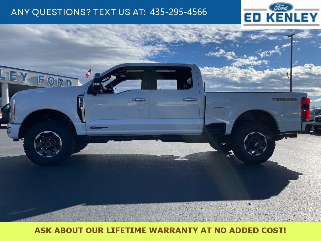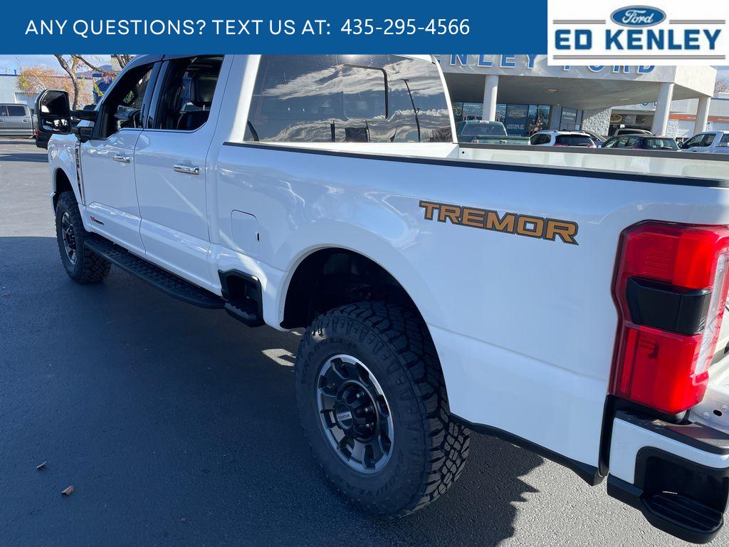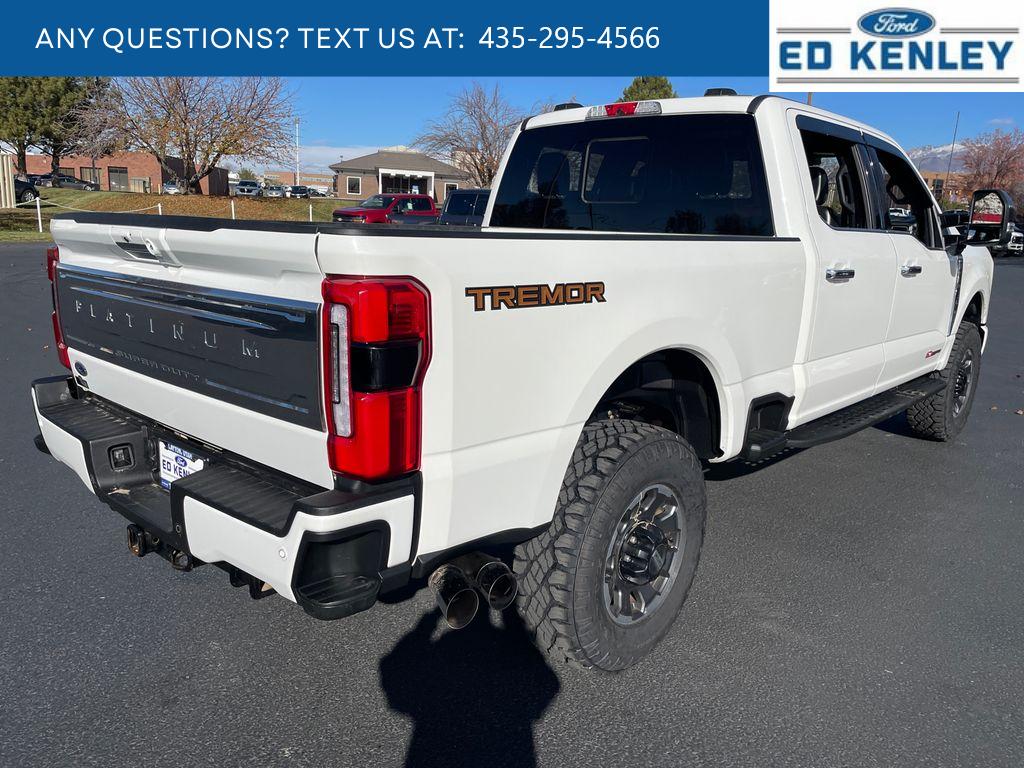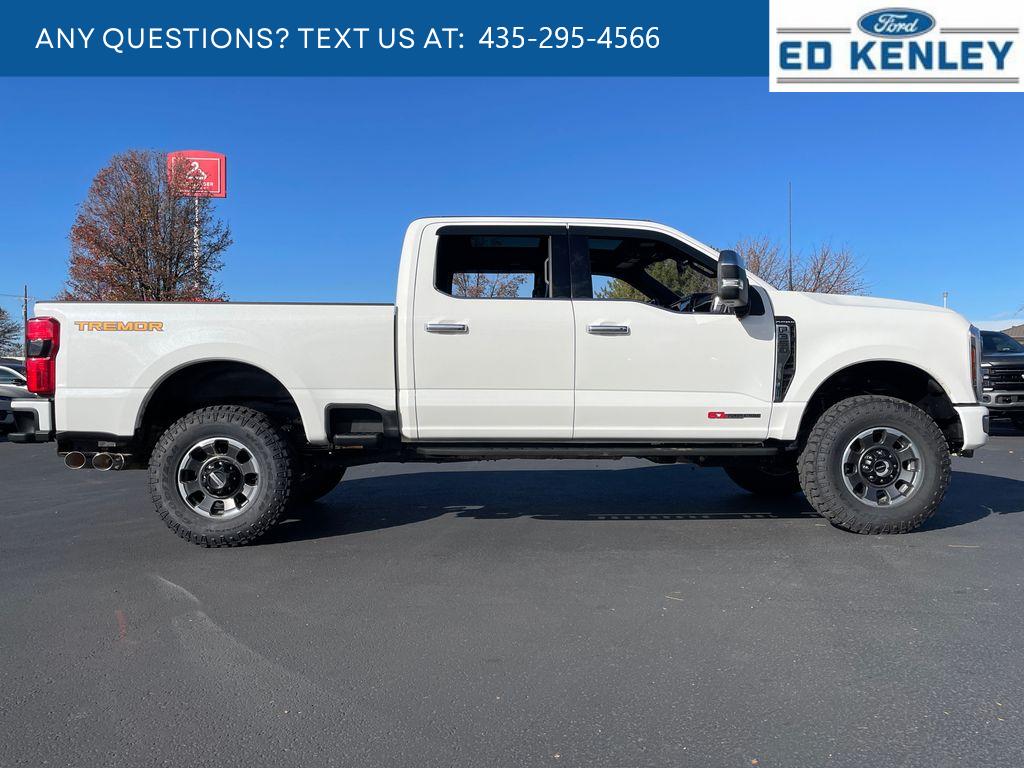Tremor Off-Road Package: Tremor Off-Road Decal; Transfer Case and Fuel Tank Skid Plates; LT285/75R18E BSW Spare Tire; Textured Matte Finish Off-Road Running Boards; Conventional Road Spare Wheel; Lane Departure Warning. Order Code 713A: TorqShift 10-Speed Automatic Transmission; 20 Bright Machined and Matte Black Aluminum Wheels; LT275/65Rx20E Premium BSW A/T (4) Tires; Unique Platinum Front Leather Seating Surfaces; B&O Unleashed Sound System by Bang & Olufsen Radio. Twin Panel Moonroof. 5th Wheel/gooseneck Hitch Prep Package. Star White Met Tri-Coat. All-Weather Floor Mats. Front and Rear Wheel Well Liners. Transfer Case and Fuel Tank Skid Plates. LED Roof Clearance Lights. **Equipment listed is based on original vehicle build and subject to change. Please confirm the accuracy of the included equipment by calling the dealer prior to purchase.**