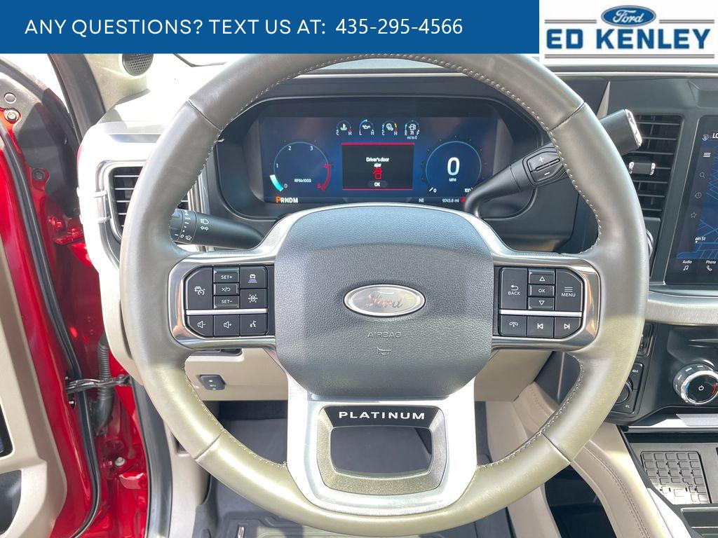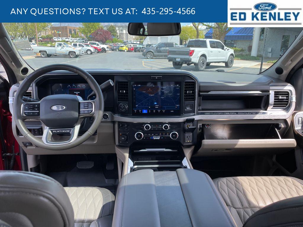 Platinum Plus Package: Premium Venetian Leather Door Panel; Upfitter Switches (6); Unique Platinum Plus Luxury Leather 40/console/40 Seats; Illuminated Scuff Plates; Premium Leather Instrument Panel Topper; Twin Panel Power Moonroof; Satin Chrome Door Handles; Pro Power Onboard - 2kW; Unique Split Centre Console Armrest; Unique Satin Finish Grille; Premium Luxury Leather-Wrapped Steering Wheel. Order Code 713A: TorqShift 10-Speed Automatic Transmission; LT275/65Rx20E Premium BSW A/T (4) Tires; B&O Unleashed Sound System by Bang & Olufsen Radio. Twin Panel Power Moonroof. 5th Wheel/gooseneck Hitch Prep Package. Pro Power Onboard - 2kW. Tough Bed Spray-In Bedliner. Ruby Red Met Tinted CC. Ruby Red Met Tinted CC. SecuriCode Wireless Keyless Entry Keypad. Front and Rear Wheel Well Liners. Upfitter Switches (6). **Equipment listed is based on original vehicle build and subject to change. Please confirm the accuracy of the included equipment by calling the dealer prior to purchase.**