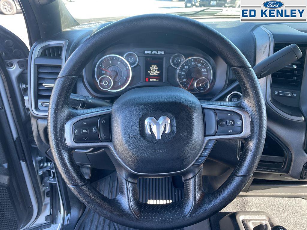 Cold Weather Group: Engine Block Heater; MOPAR Winter Front Grille Cover. Chrome Appearance Group: Bright Rear Bumper; Chrome Grille Surround; Matte Black Mesh with Chrome Grille; Center Hub; Chrome Headlamp Bezels; 18 Steel Spare Wheel; 18 X 8.0 Steel Chrome Clad Wheels; Bright Front Bumper. Quick Order Package 2HA Tradesman. Tradesman Level 2 Equipment Group: SiriusXM Satellite Radio; Cloth 40/20/40 Bench Seat; Rear Window Defroster; Power Heat Fold Telescopic Mirrors; Rear Power Sliding Window; Exterior Mirrors with Supplemental Signals; Exterior Mirrors Courtesy Lamps; Manual Folding Exterior Mirrors; Exterior Mirrors with Heating Element; Mirror Running Lights; Manuarl Telescoping Mirrors; Power Adjust Mirrors; Black Exterior Mirrors; Carpet Floor Covering; Power-Adjustable Convex Aux Mirrors. Protection Group: Transfer Case Skid Plate Shield. Uconnect 5 with 8.4 Display Radio. Chrome Flat Cab-Length Side Steps. Cloth 40/20/40 Bench Seat. Trailer Brake Control. Center Stop Lamp with Cargo View Camera. Billet Silver Metallic CC. 115-Volt Auxiliary Front Power Outlet. Power Heated Fold Telescopic Mirrors. Rear Wheelhouse Liners. Rear Window Defroster. Carpet Floor Covering. MOPAR Front and Rear Rubber Floor Mats. **Equipment listed is based on original vehicle build and subject to change. Please confirm the accuracy of the included equipment by calling the dealer prior to purchase.**