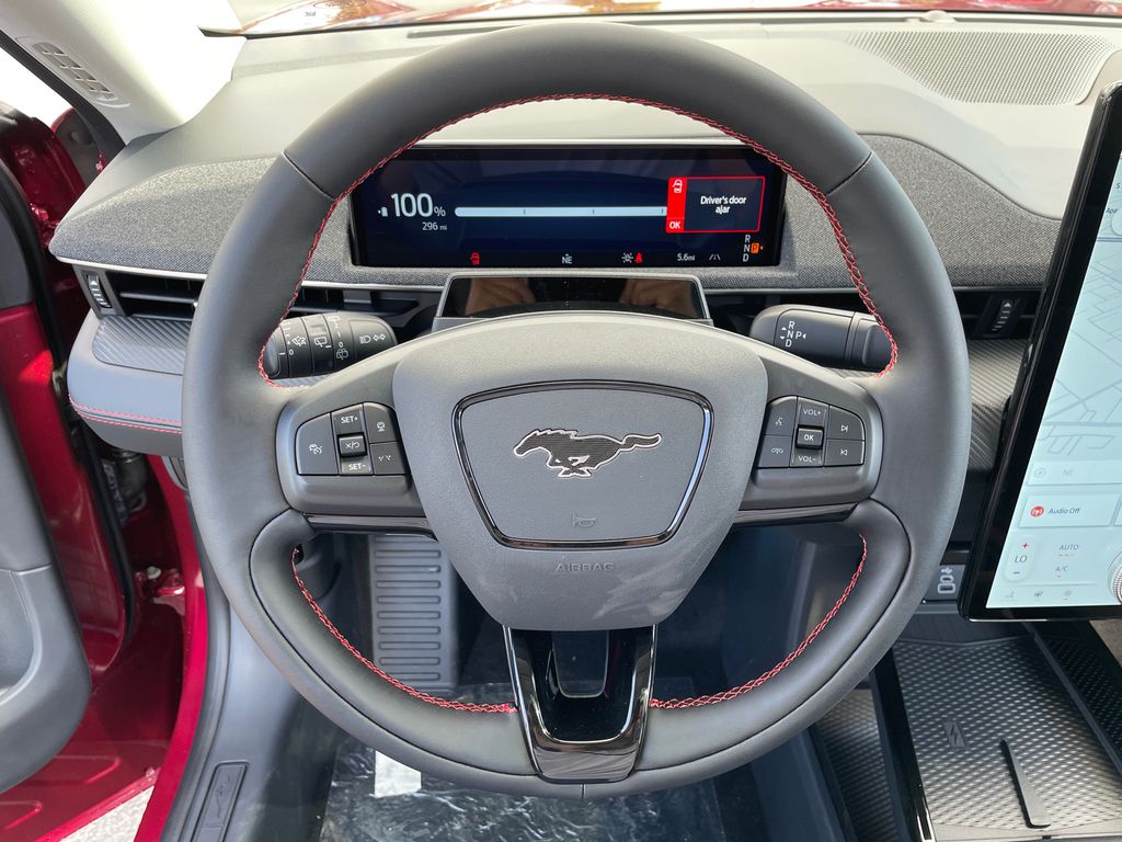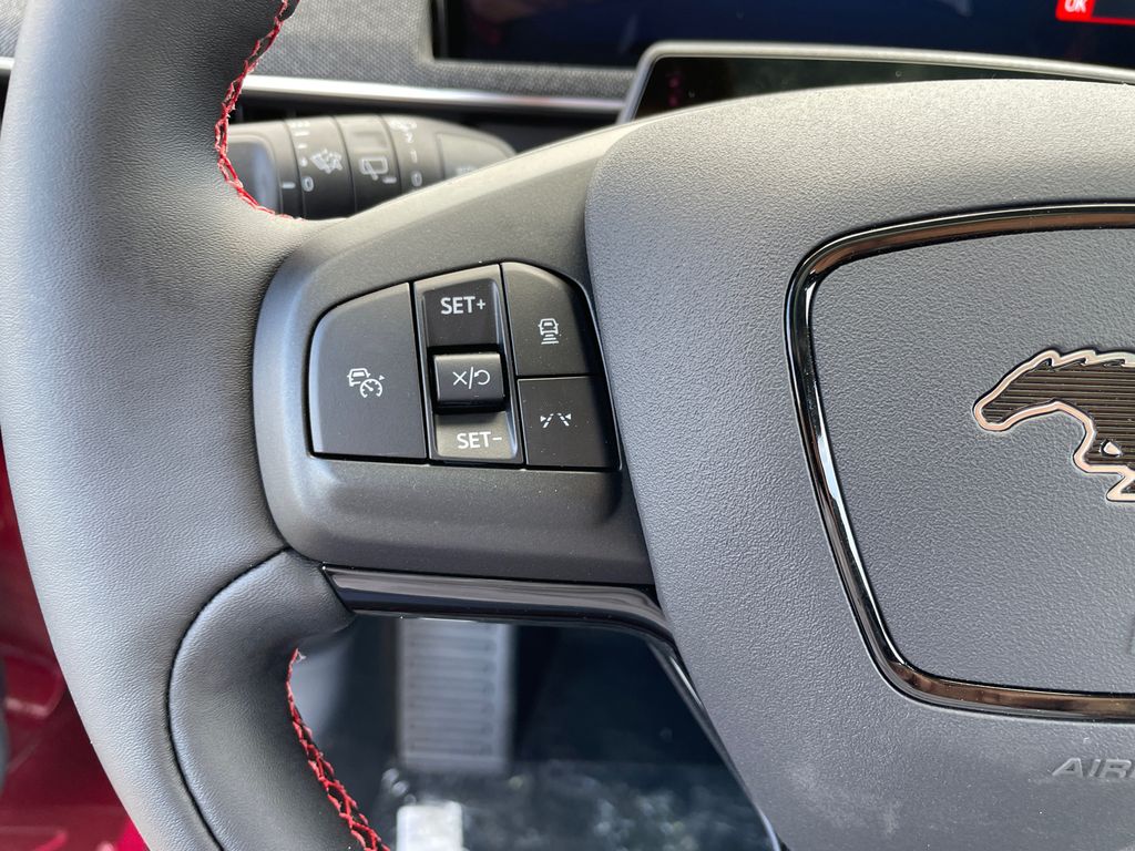 This vehicle offers Android Auto for seamless smartphone integration. Apple CarPlay: Seamless smartphone integration for it - stay connected and entertained on the go! The installed navigation system will keep you on the right path. Protect this Ford Mustang Mach-E from unwanted accidents with a cutting edge backup camera system. The leather seats in the vehicle are a must for buyers looking for comfort, durability, and style. This mid-size suv is pure luxury with a heated steering wheel. Bluetooth technology is built into this model, keeping your hands on the steering wheel and your focus on the road. This Ford Mustang Mach-E has auto-adjust speed for safe following. Conquer any rainy, snowy, or icy road conditions this winter with the all wheel drive system on this vehicle. Maintaining a stable interior temperature in this 2025 Ford Mustang Mach-E is easy with the climate control system. Enjoy the convenience of the power liftgate on this vehicle.